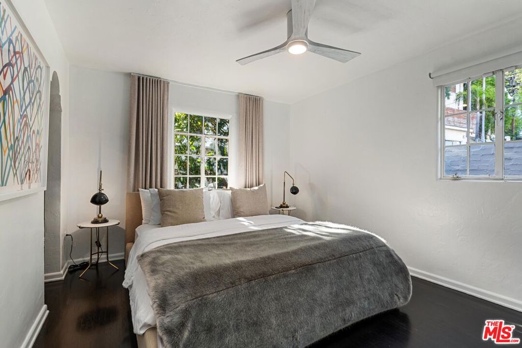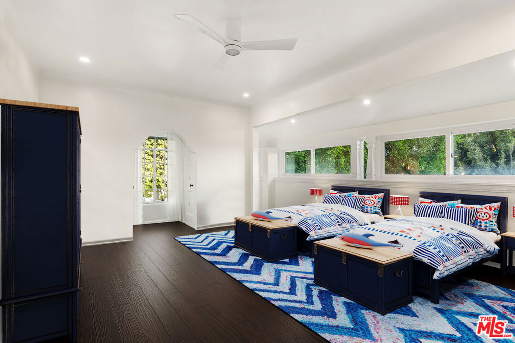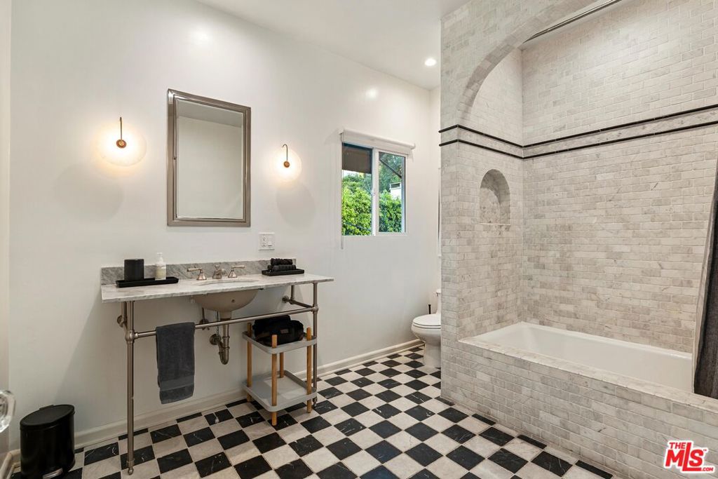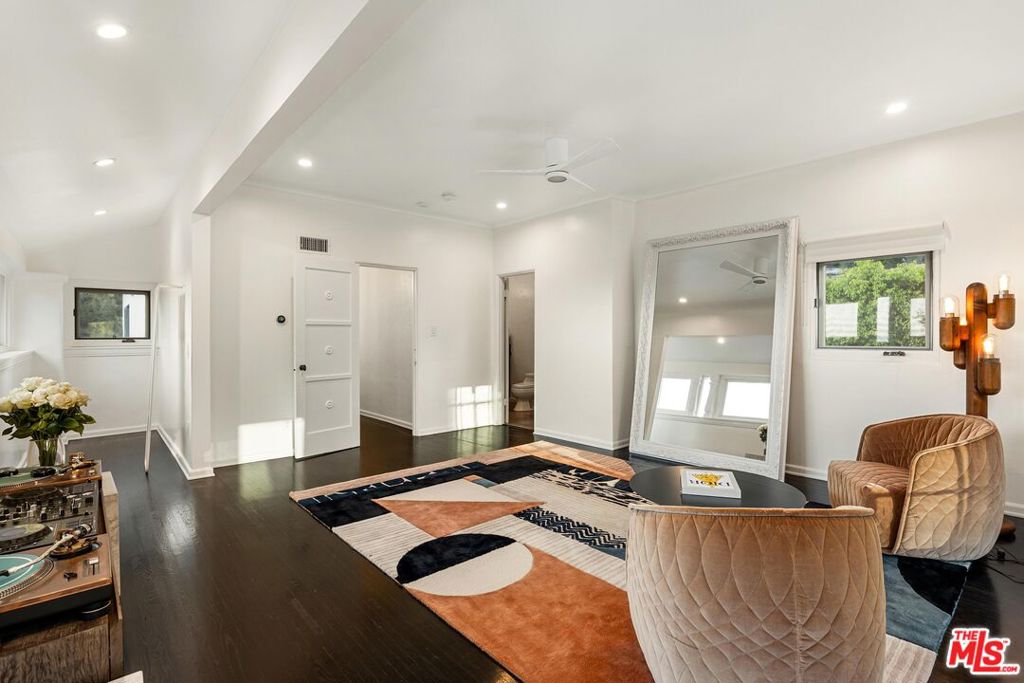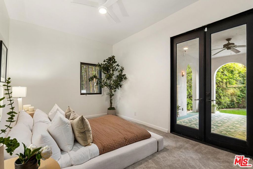 Perched in the coveted Hollywood Hills, this stunning Spanish-inspired estate masterfully blends old-world charm with modern sophistication. Tucked behind private gates and lush greenery, the home exudes character with its stained glass accents, hand-painted Spanish tiles, and intricate wrought iron details. Step inside to be greeted by a striking stained-glass window and exquisite tilework, setting a refined yet inviting tone. The main level features a grand living room with a fireplace, seamlessly extending to two patios that showcase breathtaking city views. A formal dining room and a chef's kitchen, complete with marble countertops, a spacious walk-in pantry, and a wine fridge, offer an ideal setting for hosting. Illuminated by bespoke Murano glass chandeliers and designer lighting from Soho Homes & Allied Maker, the residence radiates elegance throughout. The lower level is home to a custom screening room that opens to a charming loggia, leading directly to an outdoor sanctuary. The beautifully reimagined gardens by acclaimed designer GSSM frame a sparkling pool, spa, and manicured lawn, all enhanced with smart irrigation technology for effortless maintenance. With five bedrooms and four and a half bathrooms, this home provides a perfect balance of luxury and comfort. Behind the gated driveway, five-car parking adds convenience, including an attached two-car garageone thoughtfully converted into a state-of-the-art private gym, complete with cutting-edge equipment and an oversized LED-lit custom mirror. Positioned just moments from the Sunset Strip, this exceptional property captures the essence of Hollywood Hills living, offering a private retreat with sweeping views and a seamless indoor-outdoor flow.