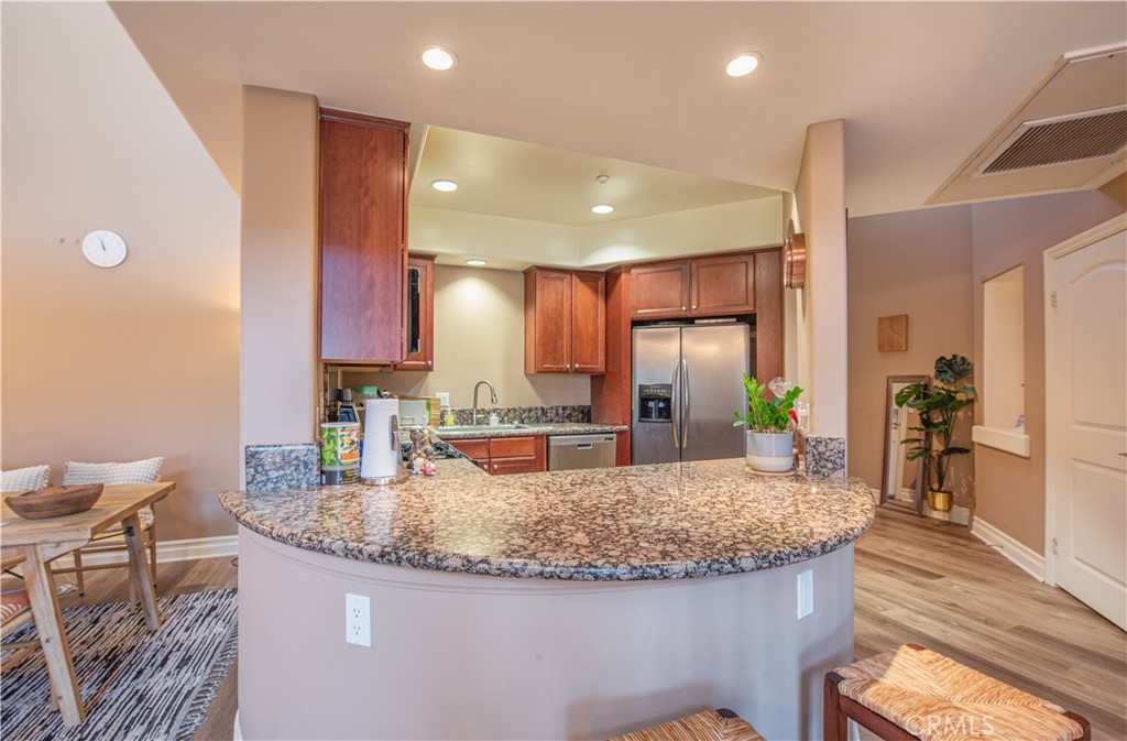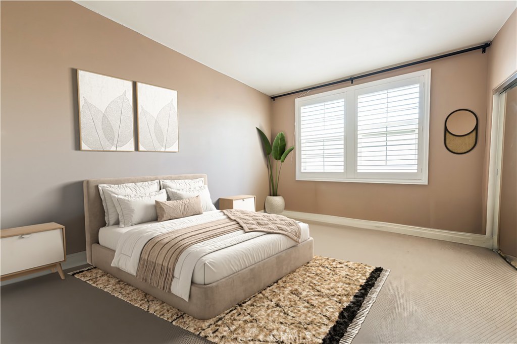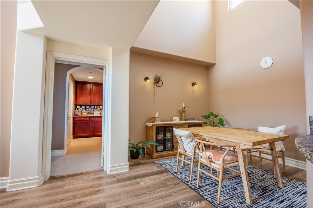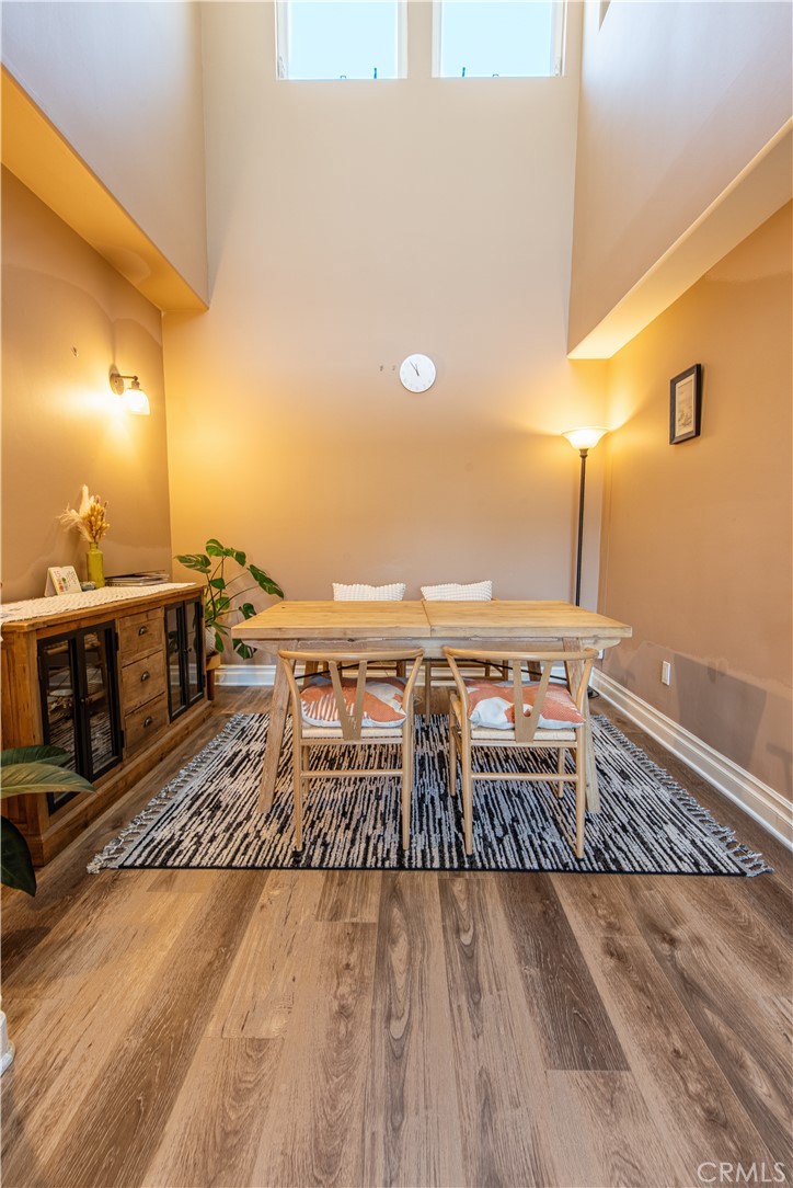 Step inside to discover new flooring in the living room seamlessly complementing the natural wall tones, creating a serene ambiance under the lofty ceilings flooded with natural light. With the convenience of a washer and dryer within the unit, and easy access to the 405 freeway, this property offers both comfort and practicality.