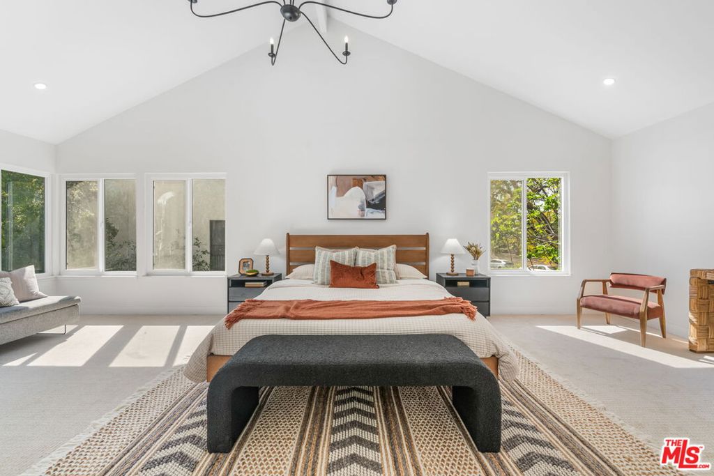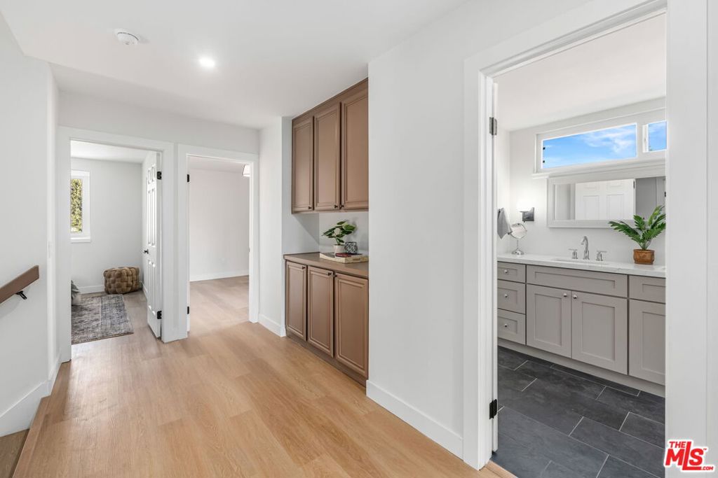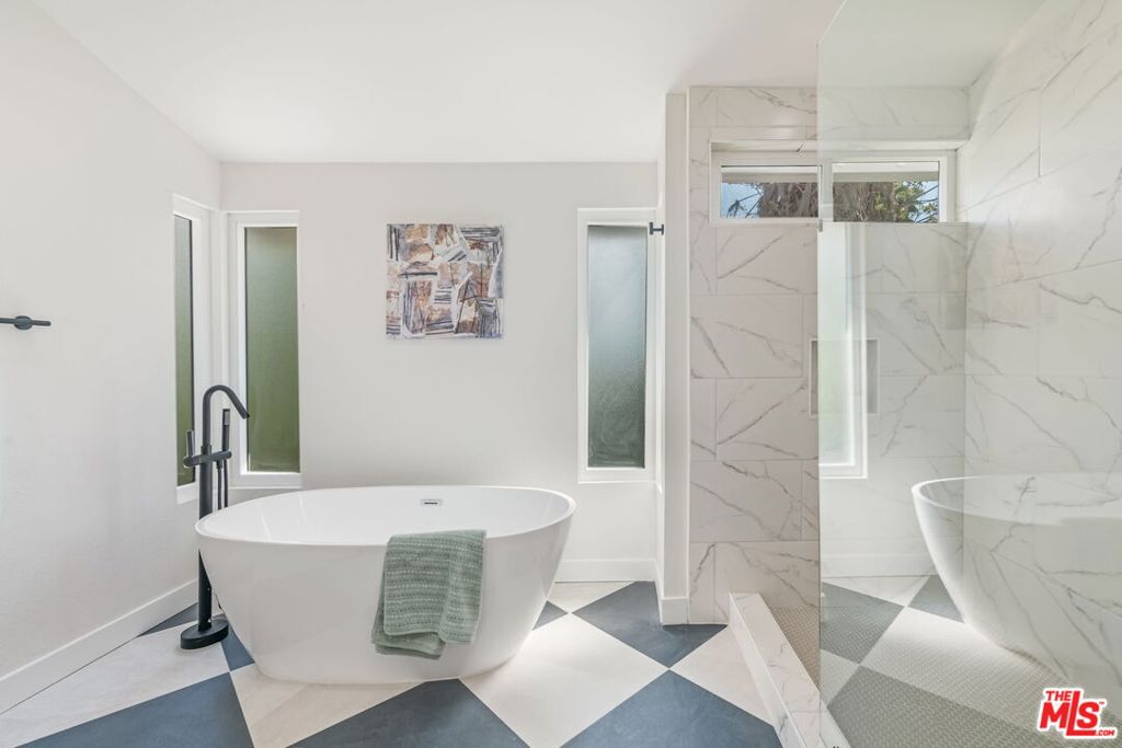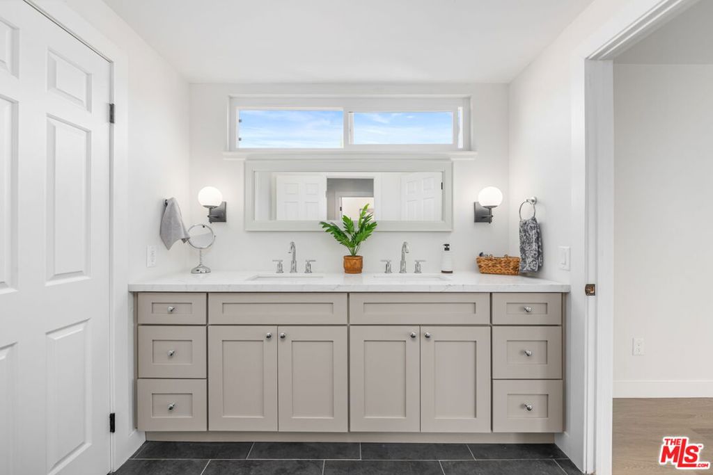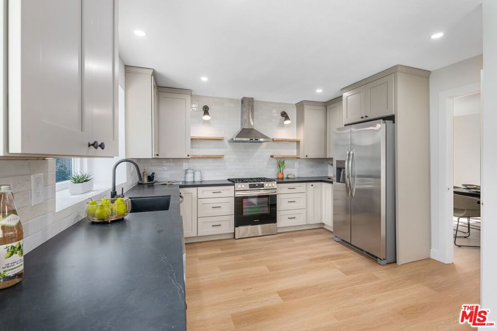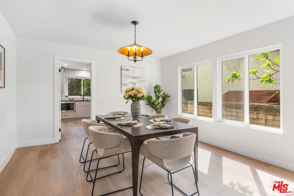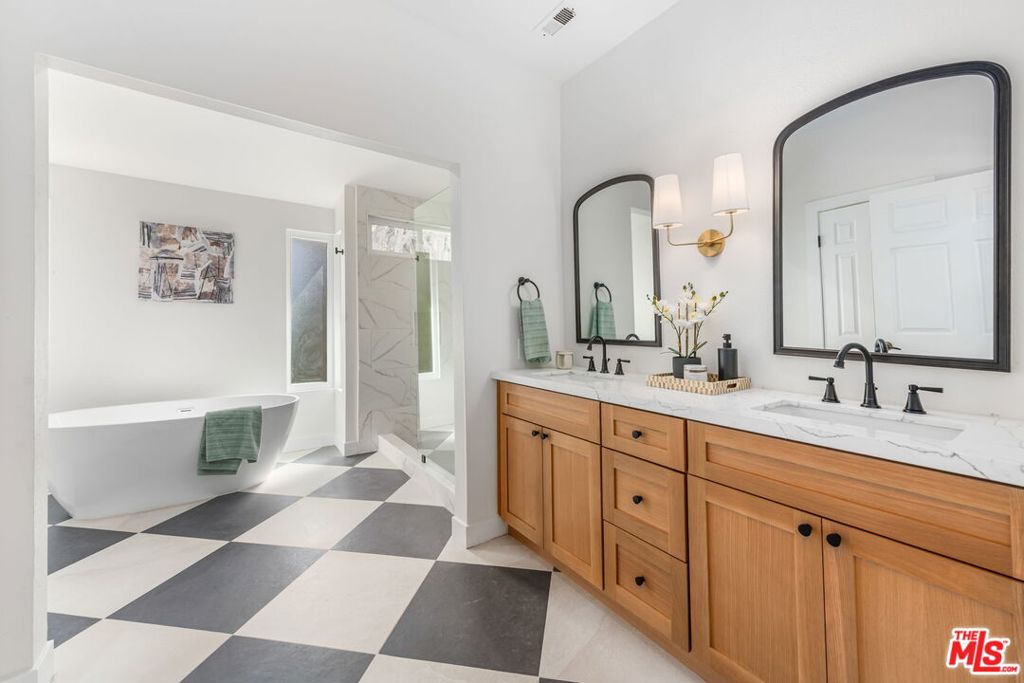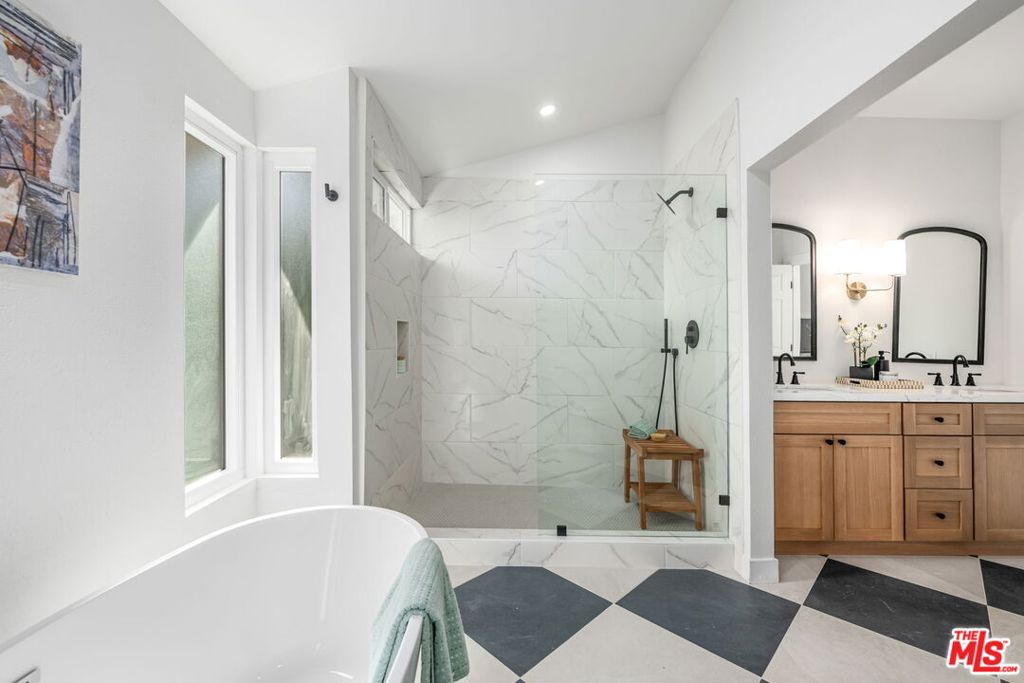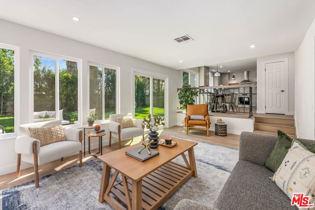 Beautifully updated two-story traditional makes a striking first impression with its timeless brick-accented facade, manicured landscaping, brick-paved driveway, and welcoming covered entry. Step inside the sun-soaked living room with soaring vaulted ceilings, wide-plank laminate wood floors, and recessed lighting. A stunning whitewashed brick fireplace anchors the space with character and charm. The open-concept layout flows naturally into a spacious dining room filled with natural light. The thoughtfully designed kitchen features soft-tone shaker cabinetry, quartz countertops, floating shelves, and stainless-steel appliances all framed by large windows and sliding glass doors that overlook the expansive backyard. A cozy breakfast nook connects to the lower-level family room, which centers around a dramatic floor-to-ceiling stone fireplace, flanked by oversized windows that bring the outdoors in. Upstairs, the generous primary suite with soaring vaulted ceilings offers a peaceful retreat, complete with a walk-in closet and a private en-suite bathroom that blends space, light, and modern style. Features include a dual-sink vanity, checkerboard tile, a walk-in shower with frameless glass, and a freestanding tub positioned beneath high windows for natural light and privacy. Three additional bedrooms upstairs each offer unique charm including a built-in window bench in one and mirrored closet doors in another. A wide hallway with built-in cabinetry adds extra storage, while the shared bathroom offers a fresh, updated aesthetic with a double vanity, stylish lighting, and a bright, clean tub-and-shower combo. Downstairs, a fifth additional bedroom adjacent to the laundry room could easily serve as an office space for working from home. The third bathroom downstairs, with an oak-finish vanity and engineered stone top, serves as a powder room for guests. Step outside to a private backyard sanctuary with mature trees and tall hedging that create a serene, secluded feel. A spacious patio is ideal for al fresco dining and weekend gatherings, while the large, lush green lawn provides ample space for play or relaxation. THIS IS A MUST SEE!