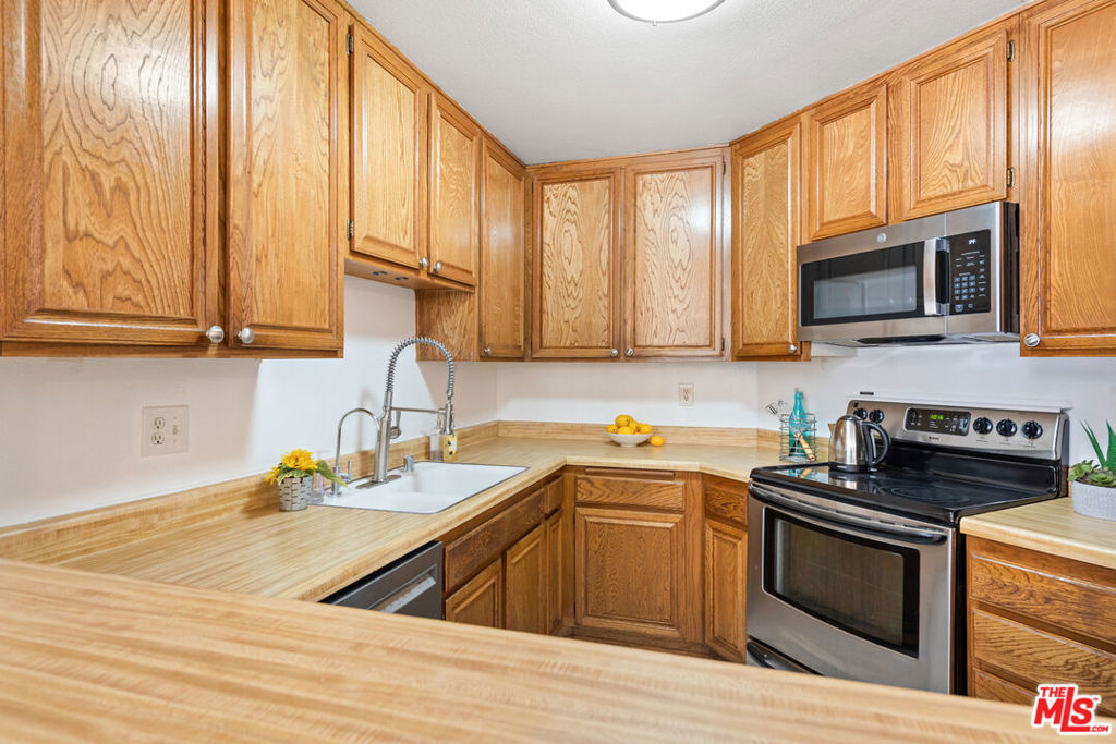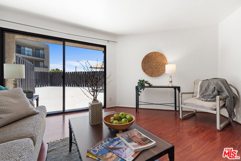 Nestled in the highly desirable Monterey Hills area of Los Angeles, this 2-bedroom, 1-bathroom condo is completely move-in ready, fresh, bright and light-filled with an open-concept offering a seamless flow between the living, dining, and kitchen with direct access to an amazing and rare 800 square-foot private patio (feels like your back yard) from two rooms, expanding your living space into the outdoors all year long. Relax, have fun, entertain and test out your green thumb in your own massive patio. Adding to the clean, contemporary aesthetic of the living space is a kitchen breakfast bar, stainless steel appliances for the aspiring cook and more--rooms with smooth ceilings, tile, engineered wood floors throughout and mirror closet doors in the primary bedroom. The bedrooms are spacious and flooded with light and the sleek spa like bathroom includes a shower over the tub and washer/dryer for your convenience. Unit 154 offers a winning combination of comfort, style, and Southern California flair in a single level unit designed for serenity and entertainment opportunities. The Eaton Crest complex is a limited-access building with comfortable amenities which include two assigned parking spaces(20 and 21) in a secured garage with EV Chargers, heated pool, spa, club house and guest parking. Whether you're a first-time buyer, downsizer, or someone looking for a LA getaway this location will accommodate your every need: major freeways, trendy restaurants and shops, entertainment venues, markets and Trader Joe's, dog parks, parks and hiking trails, historic Pasadena, trend-setting Highland Park, Downtown LA and USC Med Centers all in close proximity. The HOAs cover general maintenance, trash, hot water, landscaping, HOA insurance.
