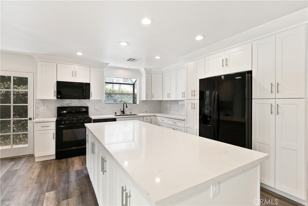 3-bedroom, 2-bath Woodland Hills home recently remodeled featuring an open floor plan and owned solar panels for energy efficiency and cost savings. The home has been thoughtfully updated with new gray wood-style flooring throughout, a fully renovated kitchen, and completely remodeled bathrooms.